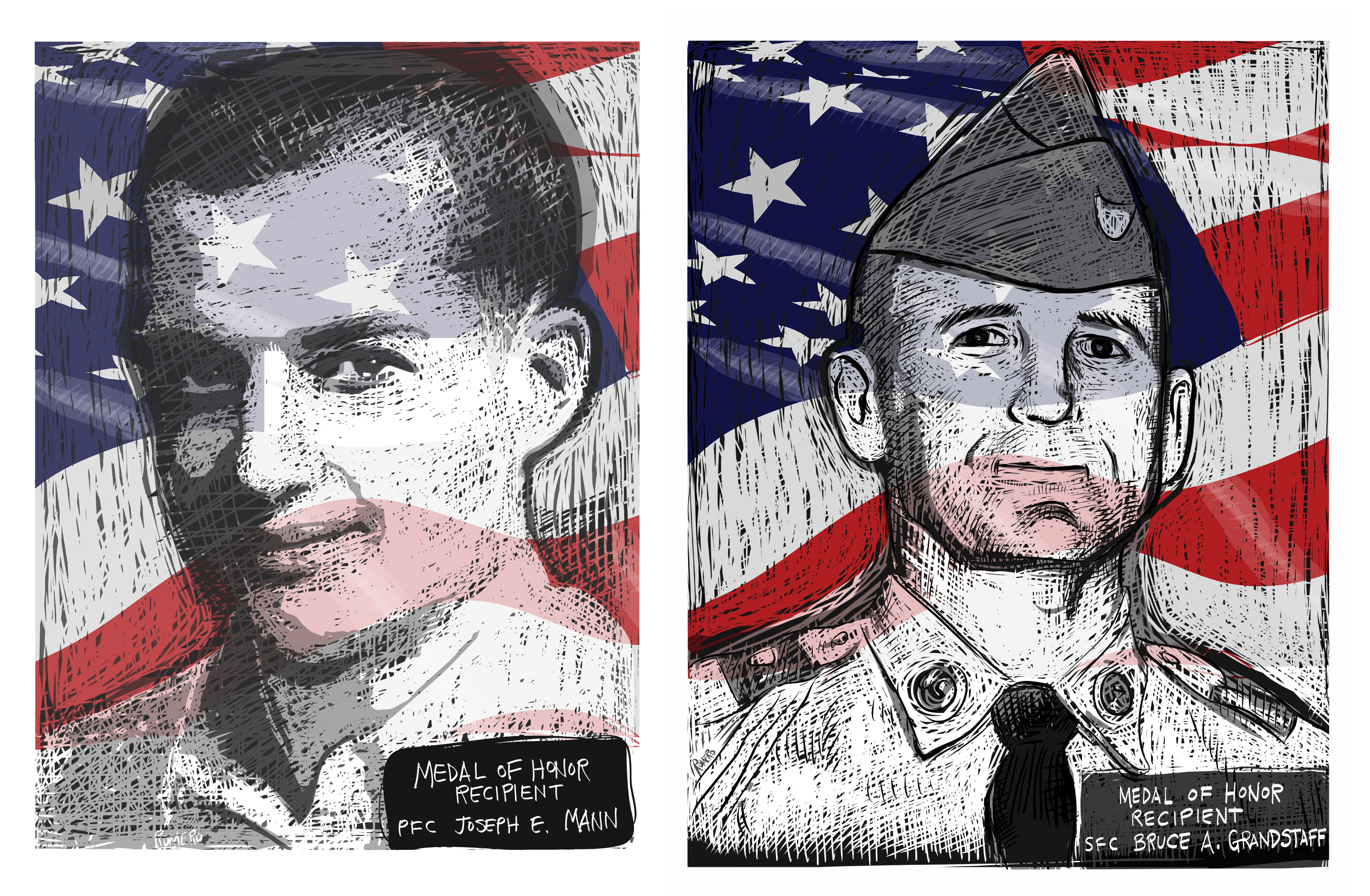 Medal of Honor Recipients PFC Mann and SFC GrandstaffI will be donating the portraits I made of these Medal of Honor recipients to the Spokane VA Medical Center on the 70th Anniversary of the VA facility, this Saturday, July 21st.