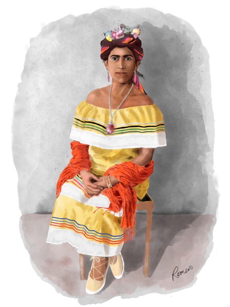 A while back I asked my wife Anita to dress up as Frida and pose for me so I could take some photos as a reference for a painting. This portrait is the result. I gave it to her for her birthday. She gave it the title, “Mis Raíces”.